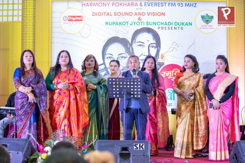 नेपाली सांगीतिक क्षेत्रका नक्षत्रहरु अरुणा लामा र तारादेवीको स्मृतिमा उनीहरुप्रति ‘ट्रिब्यूट’ दिने उद्देश्यले आयोजित स्मृति साँझमा पोखरेली कलाकारहरुले अरुणा लामा र तारादेवीका गीतहरु उडी जाउककं भने – देवी गुरुङ, काली पारे दाइ कति राम्रो – लक्ष्मी गिरी, भेटिनु छुटिनु त – एलिना गुरुङ, फूलै फूलको मौसम तिमीलाई – रजनी ऋदम राई, यति धेरै माया दिई – कौशल्या गुरुङ, उकालो ओरालीहरुमा – इतु जोजिजु, लुकु लुकु लाग्यो मलाई – इतु जोजिजु र रामभक्त जोजिजु, सागुरी बारी नि है – सितल थापा, ए कान्छा, मलाई सुनको तारा – सितल थापा र रामभक्त जोजिजु, तिम्रा पाउहरूमा म – मितु पाल सिंह, फूललाई सोधें – संगीता राणा प्रधान, पोहोर साल (धुन) – बोबी सुनारले गुञ्जाउनेछन् ।त्यस्तै समूह गीतहरूमा “यो मायालाई भरोसा छैन,” “हाम्रो साहेब” (माया प्रीति चलचित्रबाट), र “सुङावा जस्तो जीवन” (शान्तिदीप चलचित्रबाट) प्रस्तुत गरिनेछ । त्यसबाहेक दुई स्वर किन्नरीका समकालीन गायीकाहरुको गीतपनि यस वर्षदेखि समावेश गरिने संयोजक श्रेष्ठले बताए ।