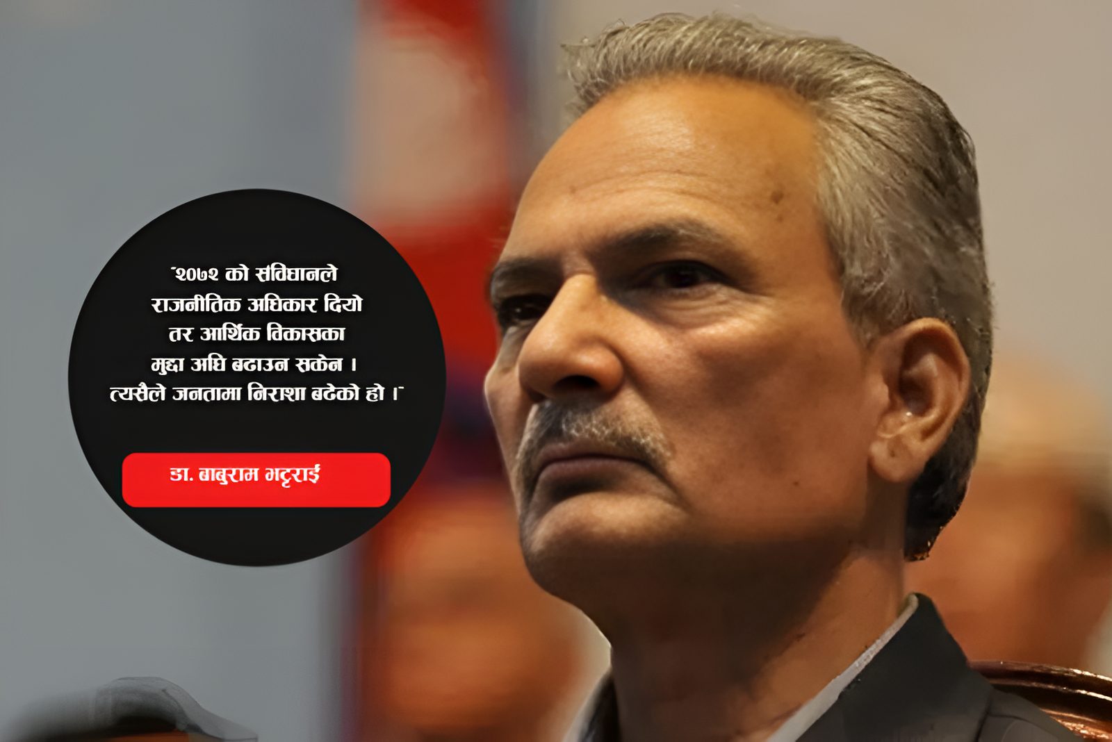 उहाँले प्रत्यक्ष निर्वाचित कार्यकारी भएमा सरकार स्थिर रहने देशमा आर्थिक विकास संस्थागत हुने बताए । “रोगको समयमा उपचार भएन भने अस्थिरता अझ बल्झिन्छ”, उनले भने, “२०७२ को संविधानले राजनीतिक अधिकार दियो तर आर्थिक विकासका मुद्दा अघि बढाउन सकेन । त्यसैले जनतामा निराशा बढेको हो