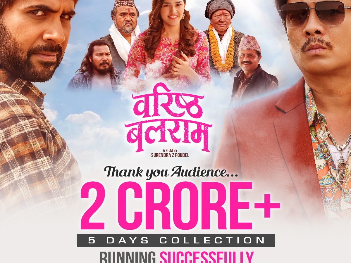 चलचित्र ‘वरिष्ठ बलराम’ले दुई करोड रुपैयाँ ग्रसकलेक्सन गरेको छ । पाँच दिनमा ‘वरिष्ठ बलराम’ले दुई करोड रुपैयाँ ग्रसकलेक्सन गरेको हो।