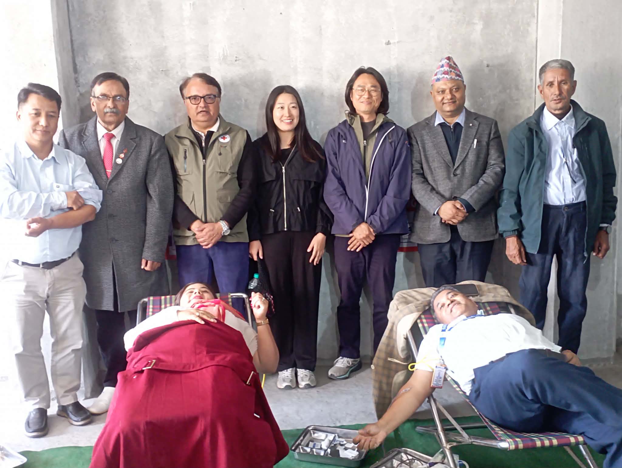 रक्तदान कार्यक्रममा रक्त सञ्चार केन्द्र पोखराको प्राविधिक सहयोग रहेको थियो ।