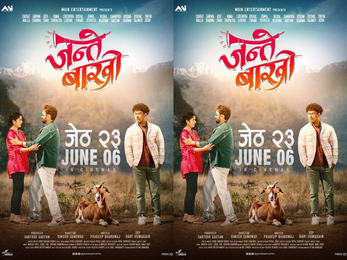 अभिनेत्री गरिमा शर्माको मुख्य भूमिका रहेको सिनेमा ‘जन्ते बाख्रो’को फस्कलुक सार्वजनिक गर्दै प्रदर्शन मिति घोषणा भएको छ। बिहिबार निर्माण टिमले फिल्मको फस्टुलक सार्वजनिक गर्दै जेठ २३ गतेबाट प्रदर्शन गर्ने घोषणा गरेको हो।