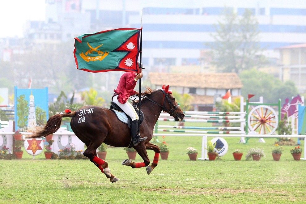 नेपाली सेनाका तर्फबाट यस दिन टुँडिखेलमा अश्वकला, मोटरसाइकल खेल, शारीरिक व्यायाम, युद्धकलालगायतको प्रदर्शन गरिन्छ । आजकै दिन ललितपुरमा पनि एउटा कानो घोडा दौडाएर घोडेजात्रा मनाउने परम्परा छ ।