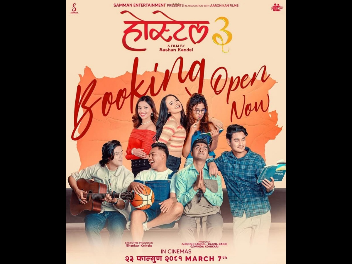 शुक्रवार रिलिज हुने फिल्म ‘होस्टेल ३’ को देशभर अग्रिम टिकट बुकिङ खुला भएको छ। अधिकांश हलमा शो खुलेको हो। नेपालकै सबैभन्दा ठुलो मल्टिप्लेक्स चेन क्युएफएक्स सिनेमाजमा करिब ८० शो, दोस्रो ठुलो चेन आइएनआइ सिनेमाजमा १५ शो तथा वन सिनेमाजमा ९ शो, बिग मुभिजमा ५ शो, र एफक्युब सिनेमामा ५ शो, बिएसआर सिनेमाजमा ४ शो समावेश छन्। बुधवार साँझसम्म देशभर करिब १२० शो सङ्ख्याको अग्रिम बुकिङ सुरु भएको छ भने बिहीबार दिउसोसम्म करिब २५० शो प्राप्त गर्ने अपेक्षा निर्माताहरूले गरेका छन्। हलहरूले उपलब्ध गराएको शो सङ्ख्या हेर्दा यस फिल्मको व्यापक ओपनिङको प्रक्षेपण गरिएको छ।