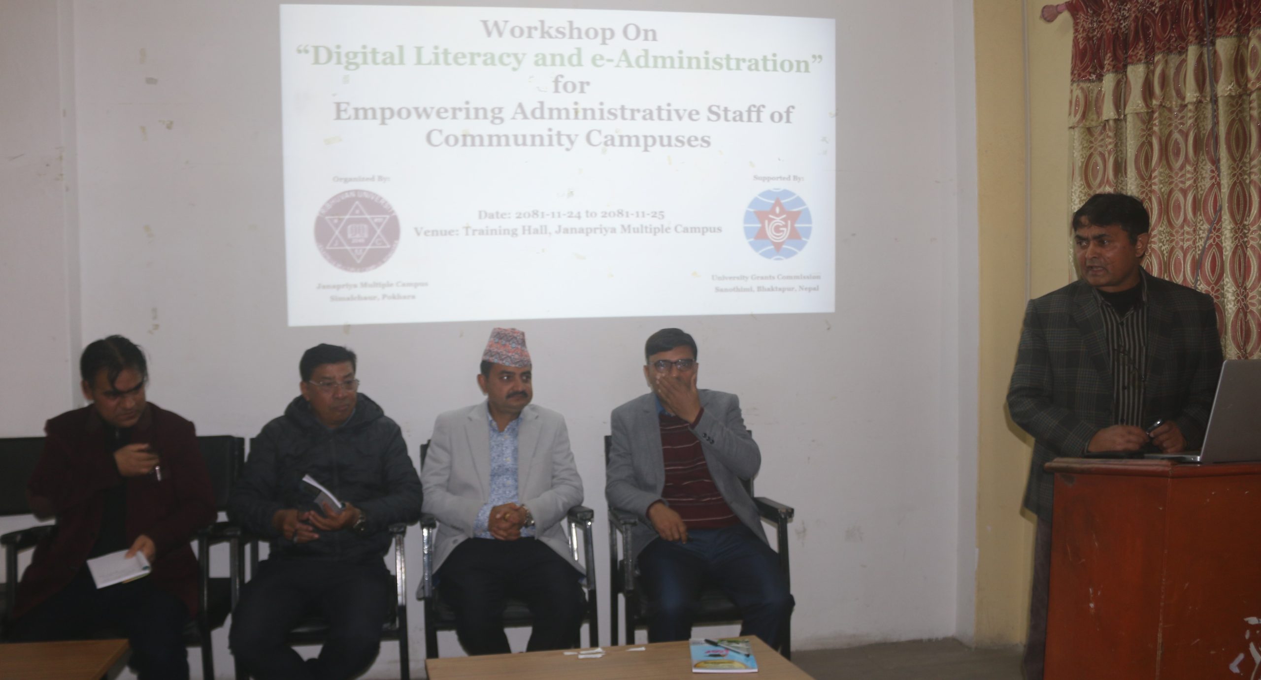 क्याम्पस प्रमुख कृष्णबाबु बरालले विश्वविद्यालय अनुदान आयोगबाट जनप्रिय लिड क्याम्पसका रूपमा छनौट भएकाले गण्डकी प्रदेशभित्रका सामुदायिक क्याम्पसका शिक्षक तथा कर्मचारीको दक्षताका लागि कार्यशाला तय गरिएको बताए । बरालले प्रशासन, लेखा, परीक्षा, पुस्तकालयमा कार्यरत कर्मचारीलाई डिजिटल साक्षरता सहित प्रविधिमैत्री प्रशासन चलाउनका लागि कार्यशाला प्रभावकारी हुने बताए ।