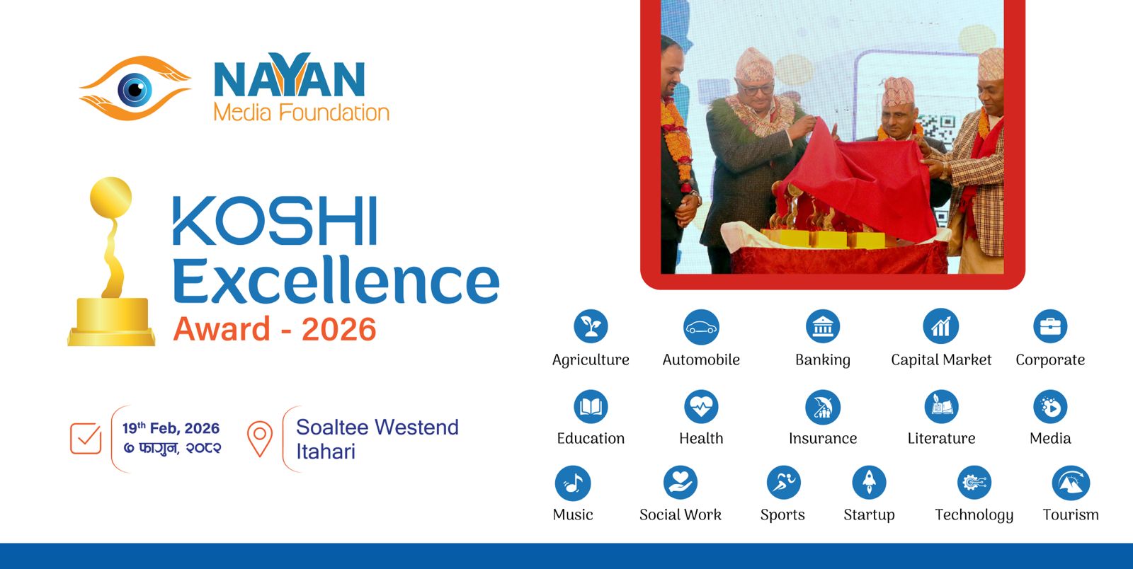 आगामी फागुन ७ गते इटहरीस्थित सोल्टी वेस्टेन्ड होटेलमा आयोजना हुने ‘कोशी एक्सिलेंस अवार्ड–२०२६’ का लागि तयारी औपचारिक रूपमा सुरु भएको छ।