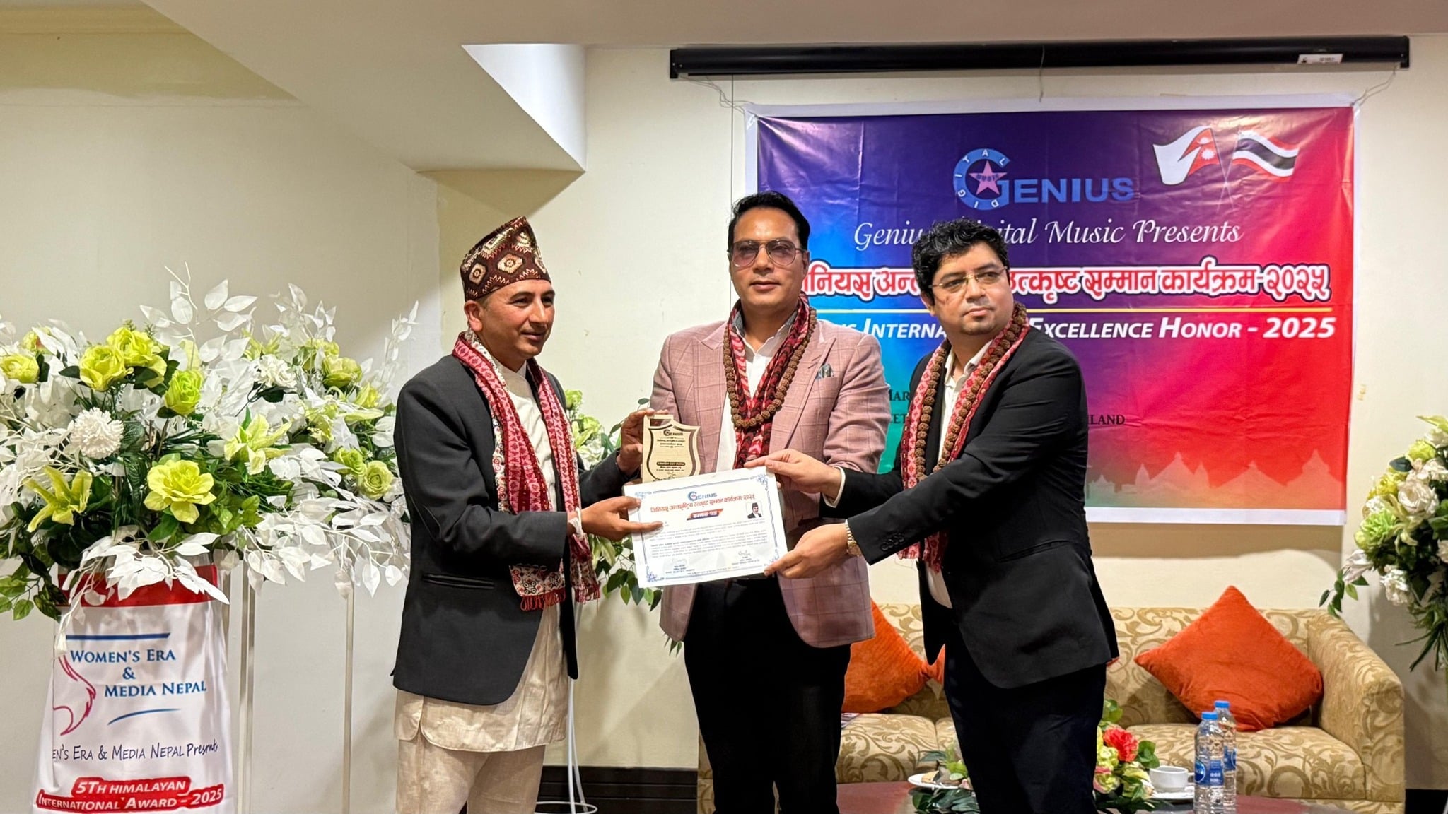 थाइल्याण्डको बैंककमा जिनियस अन्तर्राष्ट्रिय उत्कृष्ट सम्मान अर्पण गरिएको छ। विगत १६ वर्ष काठमाडौंमा रहेर गीत संगीतका क्षेत्रमा काम गर्दै आएको जिनियस डिजिटल म्युजिक प्रा।लि।ले थाइल्याण्डको बैंककमा एक विशेष भव्य समारोहबीच समाजका विभिन्न क्षेत्रमा योगदान पुर्‍याउनुभएका व्यक्तित्वहरूलाई सम्मान अर्पण गरेको हो।