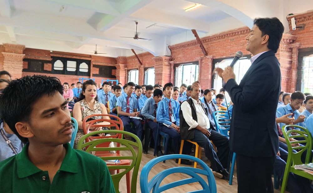 “अभिभावकको महत्व र विद्यार्थीहरु भविष्यका नेतृत्वकर्ता हुन्” विषयक कार्यक्रममा अन्तराष्ट्रिय उत्प्रेरक वक्ता तथा मानव सेवा आश्रम नेपालका अध्यक्ष रामजी अधिकारीले भविष्यमा सफल व्यक्ति बन्नका लागि विद्यार्थी, विद्यालय र अभिभावकको भूमिका महत्वपूर्ण हुने बताए ।