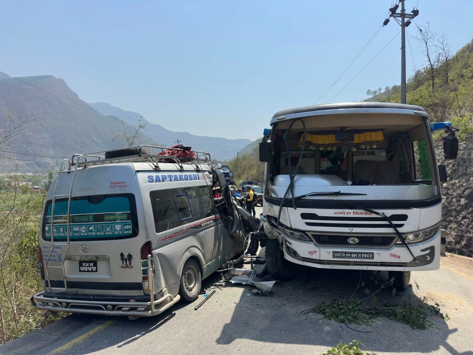 माइक्रोबस र बस एकापसमा ठोक्किँदा १० जना घाइते