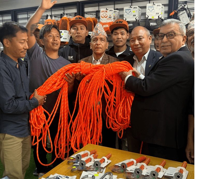 एट्के कम्पनीका प्रबन्ध निर्देशक लाक्पा शेर्पाले सगरमाथाको चुचुरोसम्म टाँग्ने डोरी, ‘क्लाइम्बिङ इक्युमेन्ट’, ‘टेक्निकल डिभाइस’ बाटो बनाउने टोलीलाई हस्तान्तर गरिएको जानकारी दिए।