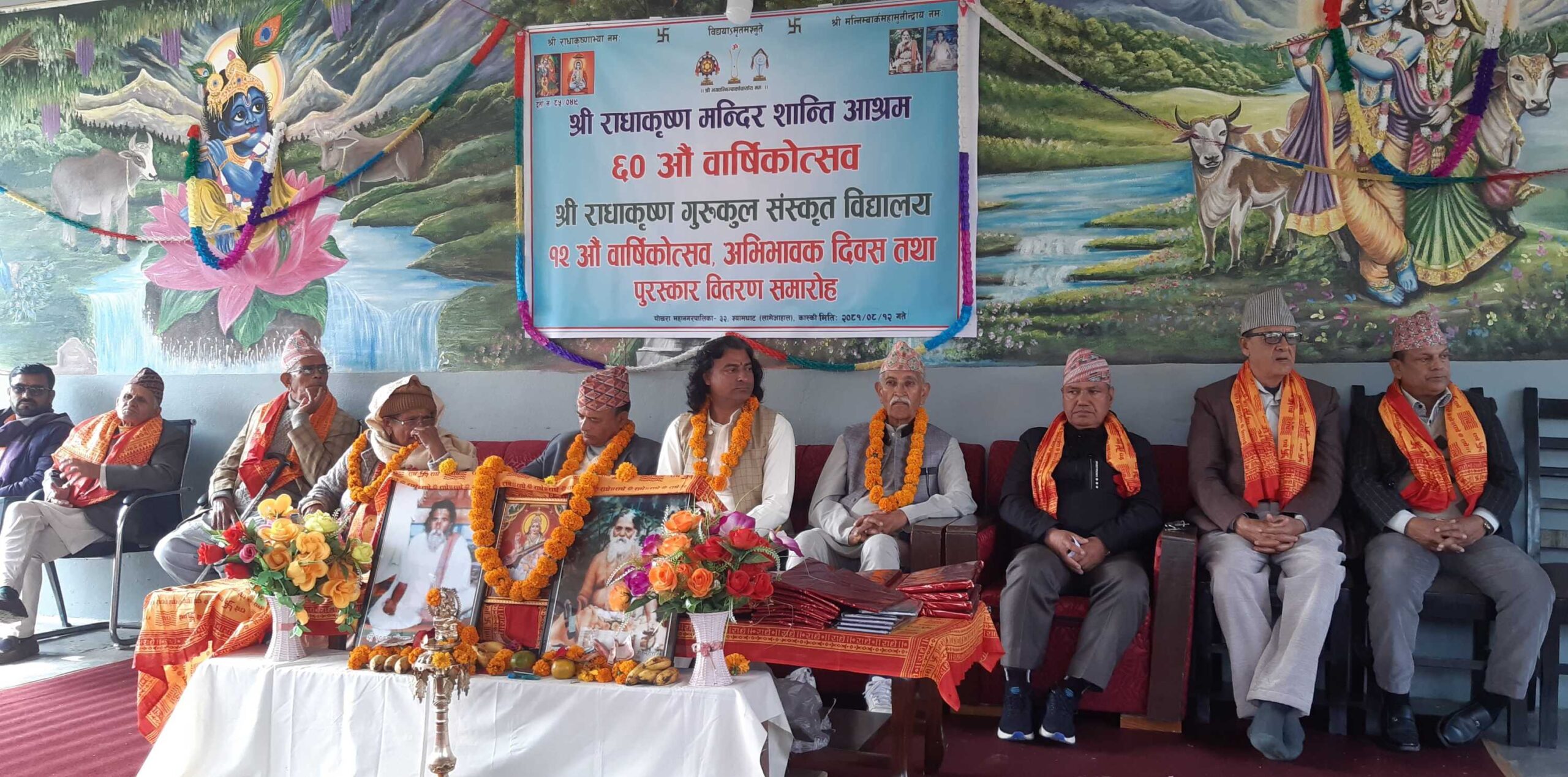 राधाकृष्ण मन्दिर शान्ति आश्रमको ६० औं वार्षिकोत्सव एवम् राधाकृष्ण गुुरुकुल संस्कृत विद्यालयको १२ औं वार्षिकोत्सव, अभिभभावक दिवस तथा पुरस्कार वितरण सम्पन्न भएको छ। बुधबार पोखरा महानगरपालिका वडा नं ३२ लामेआहालस्थित उक्त कार्यक्रम भएको हो।