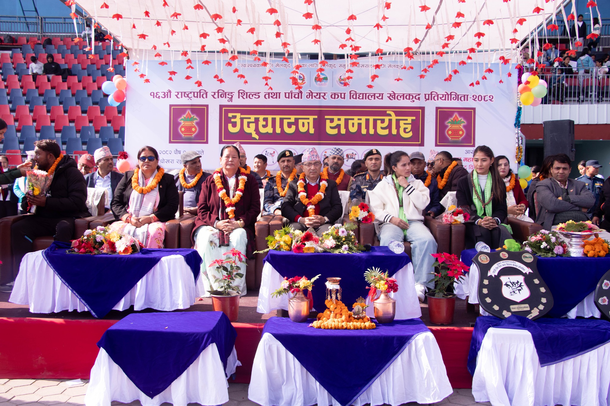 पोखरामा बुधबारदेखि १६ औँ राष्ट्रपति रनिङ शिल्ड तथा पाँचौ मेयर कप विद्यालय खेलकुद प्रतियोगिता सुरु भएको छ । पोखरा महानगरपालिका खेलकुद विकास समितिको आयोजनामा सुरु भएको प्रतियोगिता पौष ११ गते सम्म चल्ने छ । प्रतियोगिताको पोखरा रङ्गशालामा एक भव्य कार्यक्रमबीच उद्घाटन गर्दै पोखरा महानगरपालिकाका मेयर धनराज आचार्यले विस्तारै खेलकुद व्यवसायिक बन्दै गएको बताए । उनले खेलकुदले देशलाई राष्ट्रिय र अन्तराष्ट्रिय स्तरमा चिनाउने काम गरेको उल्लेख गरे ।