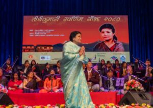 अग्रज लोकगायिका तीर्थकुमारी थापाको पहिलो एकल सांगीतिक साँझ सम्पन्न भएको छ । राष्ट्रिय नाचघर जमलमा शुक्रबार आयोजित ‘तीर्थ कुमारी स्वर्णिम साँझ २०८०’लाई नाम दिइएको उक्त कार्यक्रममा गायिका थापाले करिब २ घण्टा गायन प्रस्तुति दिइन् । केही युगल गीतमा संगीतकार समेत रहेका छोरा सुरजकुमार थापाले उनलाई साथ दिए ।