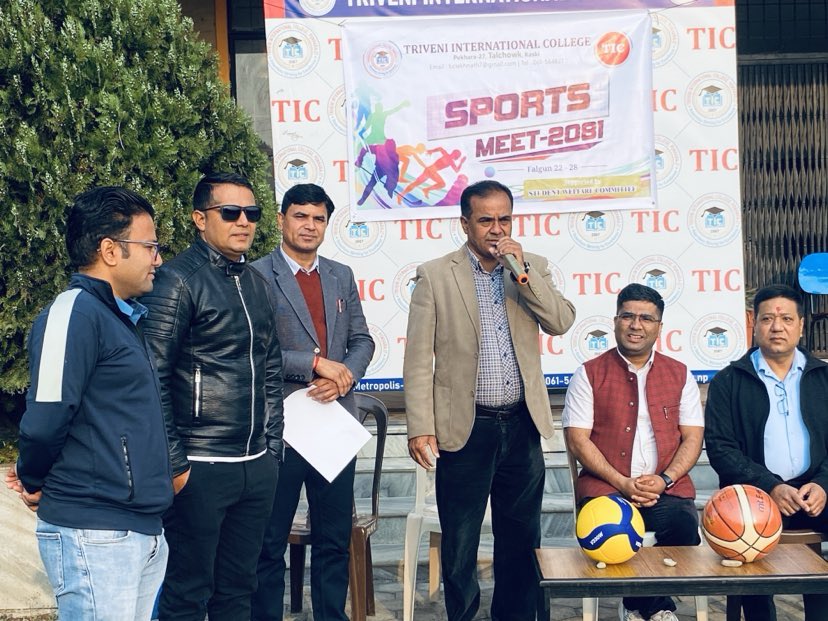 त्रिवेणी इन्टरनेशनल कलेज पोखरा २७ मा शुक्रबार देखी स्पोर्टस् मिट २०८१ शुरु भएको छ । कलेजका विद्यार्थीले विभिन्न १४ खेलका लागि स्पर्धा गर्नेछन् ।